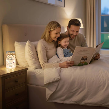 Our jars are made the slow way. We print the artwork directly on the glass, add a micro-textured frosted liner that scatters light into tiny stars, and test the warm LED for a soft, bedtime-friendly glow. After the twine bow and tag are prepared , every piece is boxed by hand.