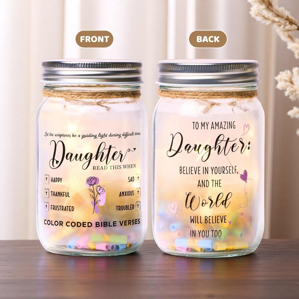Bible Verse Jar for Daughter – 92 Color-Coded Scriptures with LED Light | Inspirational Christian Gift for Encouragement & Faith
