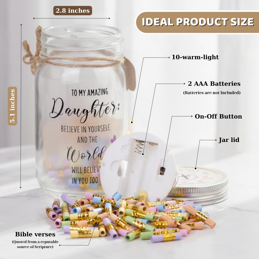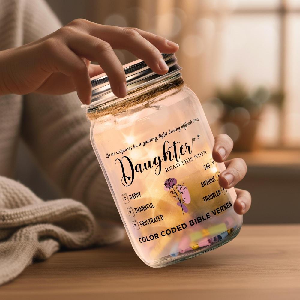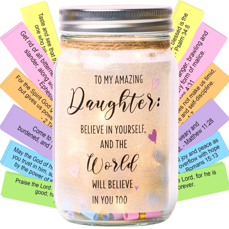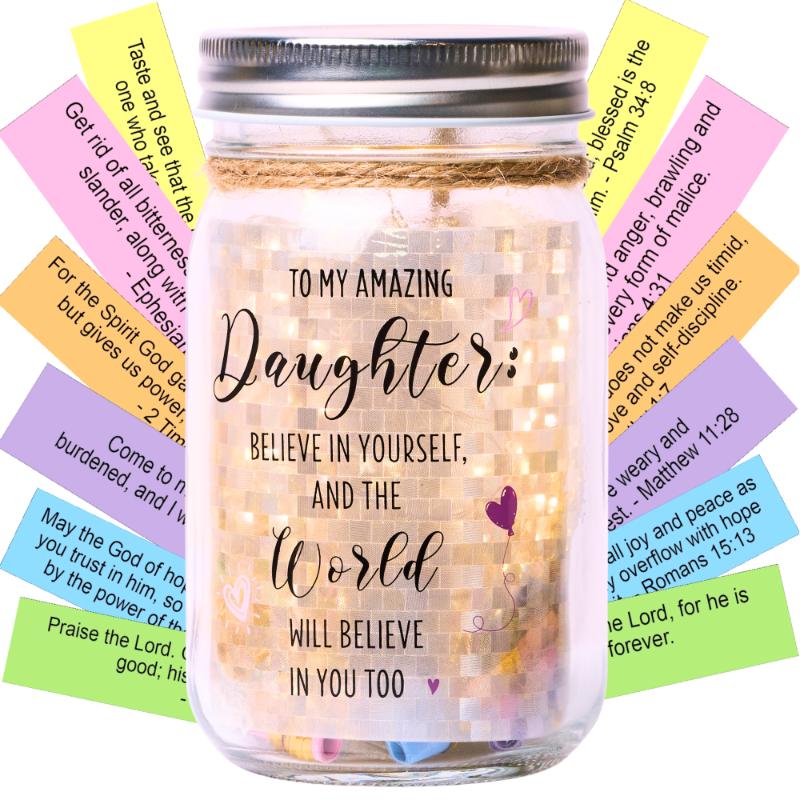 This Bible Verse Jar shines with God’s promises, wrapping your daughter in love, light, and strength when she needs it most.