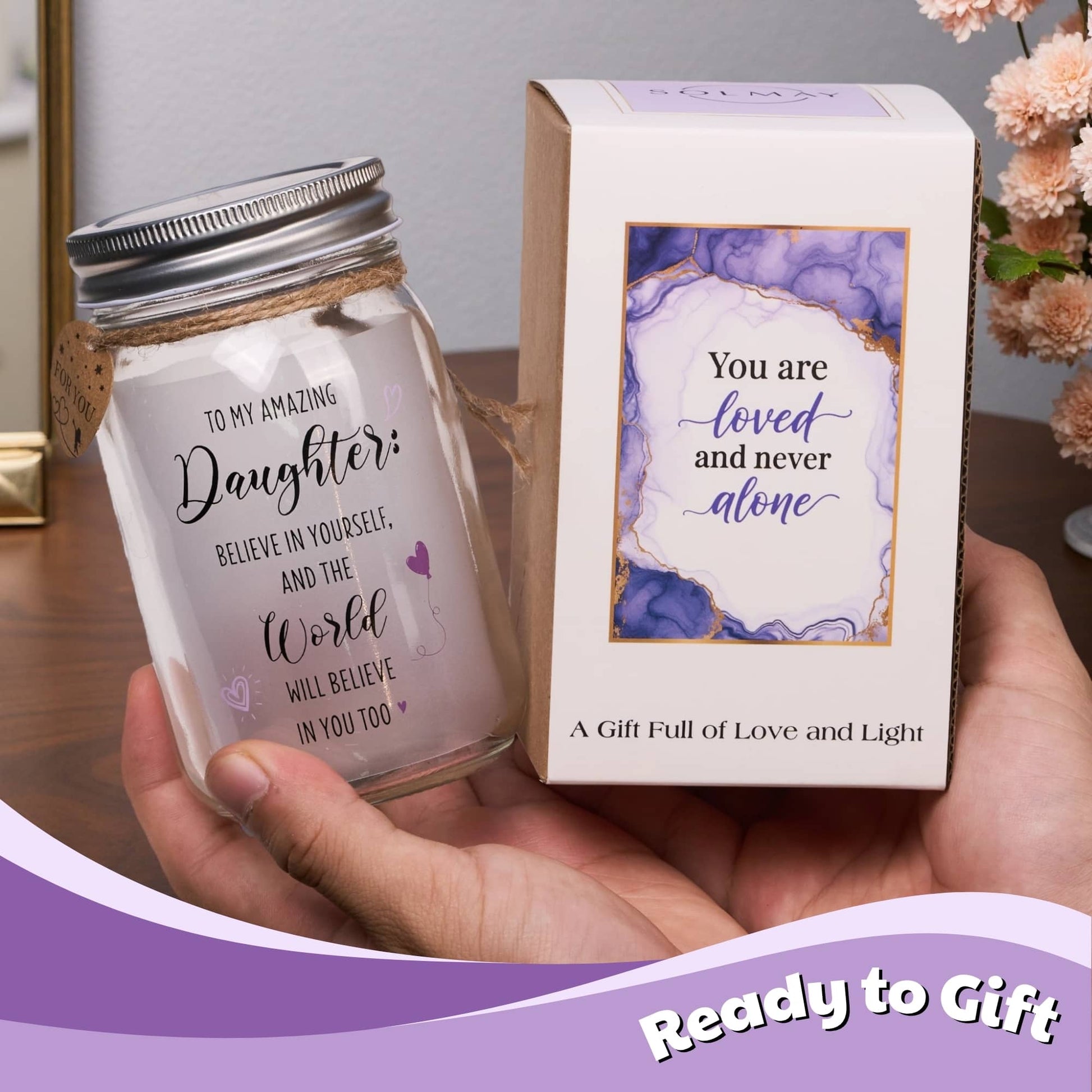 Today, Solamz creates gift-ready mason jar lights that carry life-giving messages. Each piece is designed to live where real life happens—on a nightstand, bookshelf, desk, or cozy dinner table—so its message is seen often and sinks in slowly, the way love usually does.