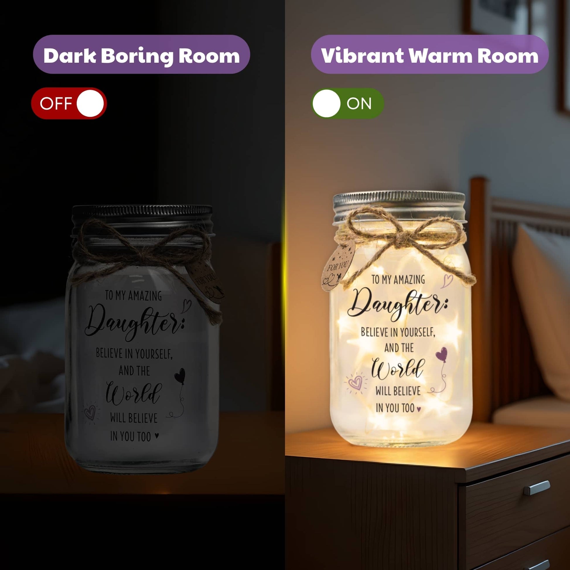 This glowing mason jar reminds your daughter daily that she’s loved, strong, and capable of anything.
