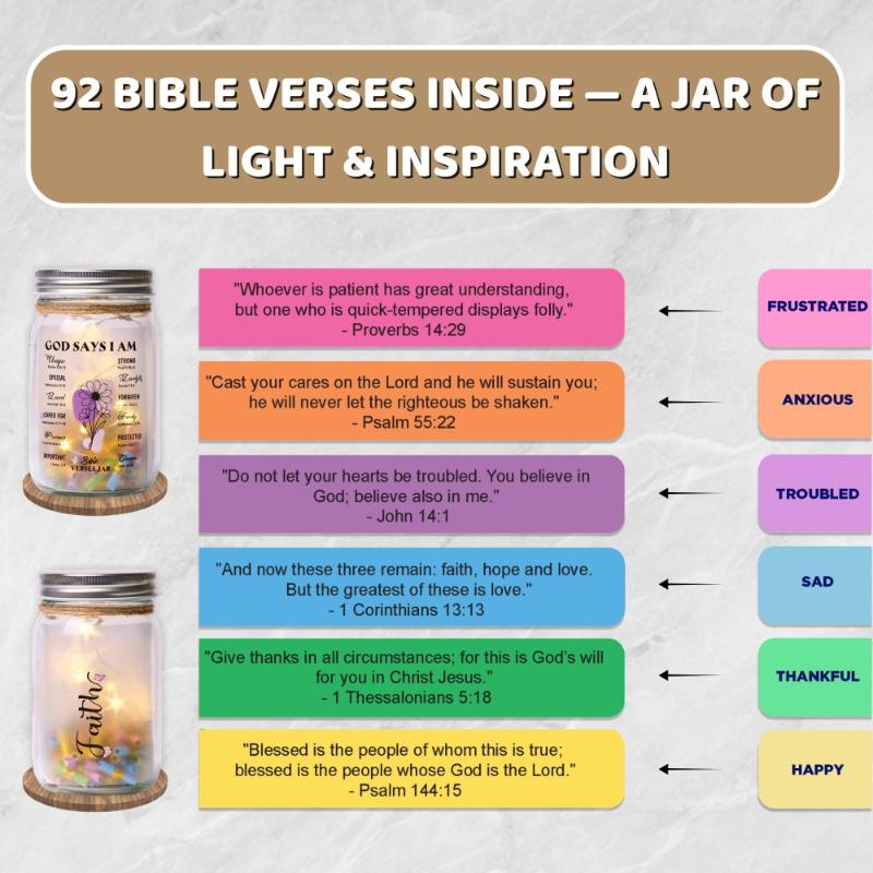 When doubt clouds your spirit, let God’s promises light your way. This glowing jar fills your space with faith, comfort, and divine reassurance every day.