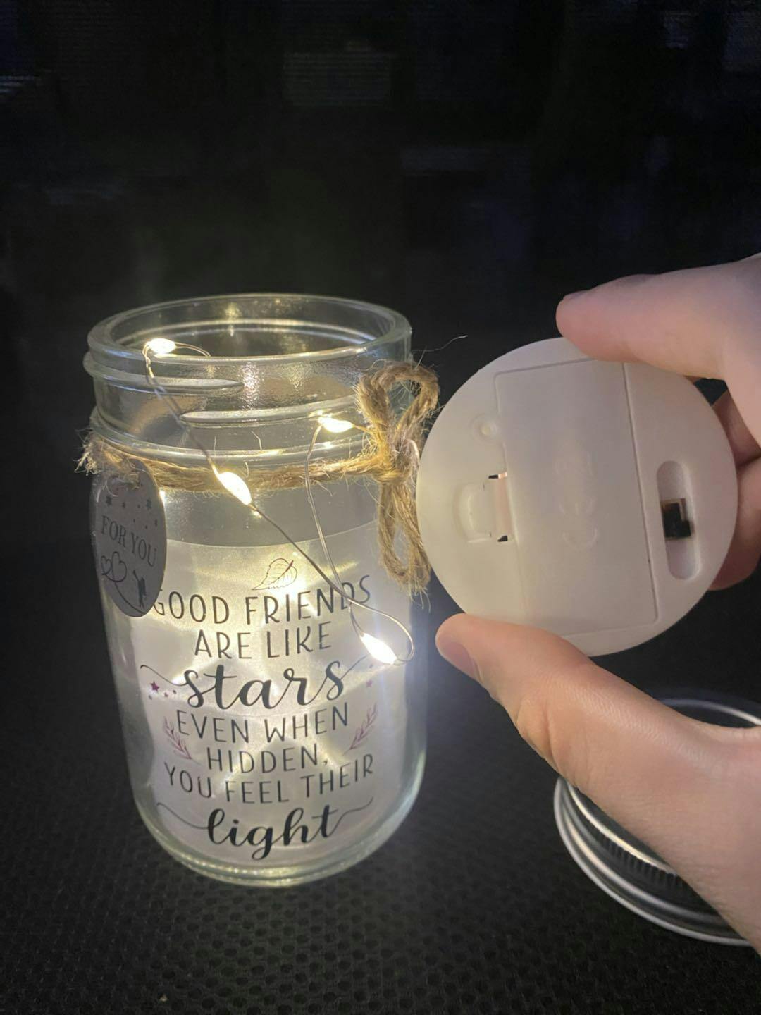 Of course—the jar can serve as a night light. Its gentle glow and starry effect make it an ideal night lamp for your evenings.