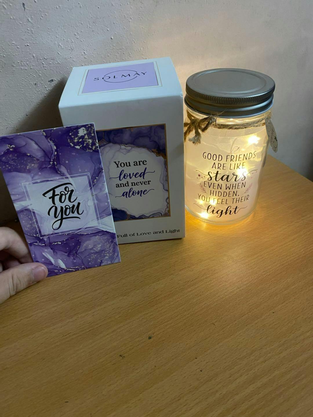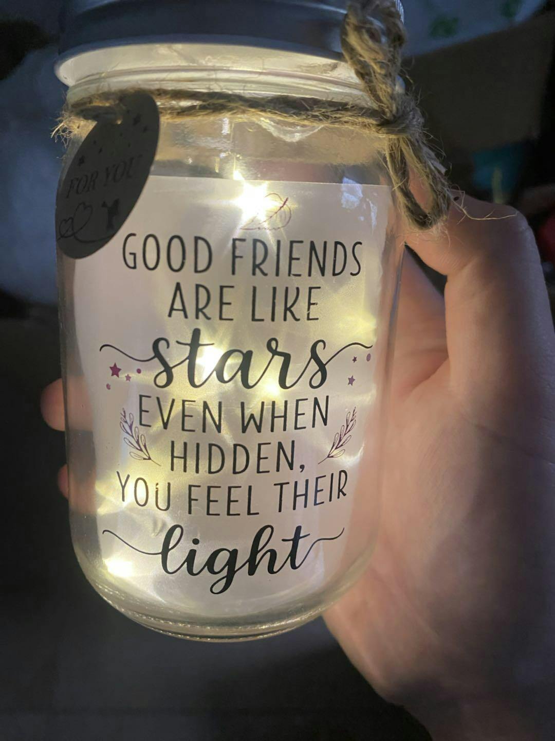 Printed with the touching message: “Good friends are like stars — even when hidden, you feel their light.”