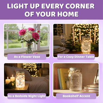 Soft LED fairy lights fill the glass jar, creating a cozy, starry ambiance perfect for bedrooms, desks, or reading nooks.