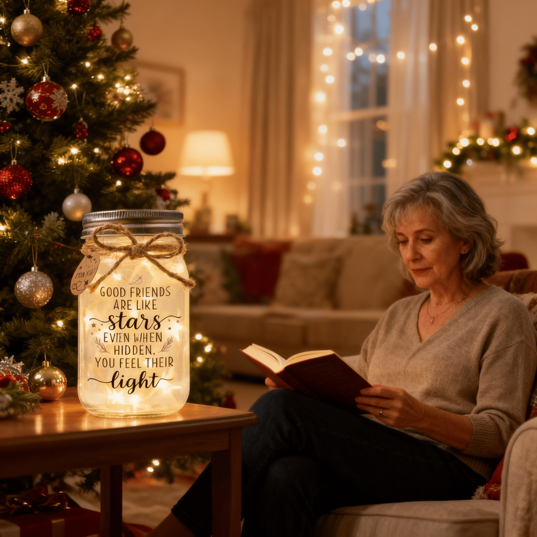 Soft LED fairy lights fill the jar and create a cozy, star-like glow—perfect for a bedside table, living room shelf, or parents’ reading corner. It feels like a little piece of you is there with them each night.