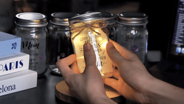 We wanted a gift that felt calm, personal, and lasting—something you could see across the room and instantly feel cared for. A small jar of warm light became our answer. When we added words—“You are loved… You’ve got this… Always in my heart”—the idea clicked: a light that speaks.